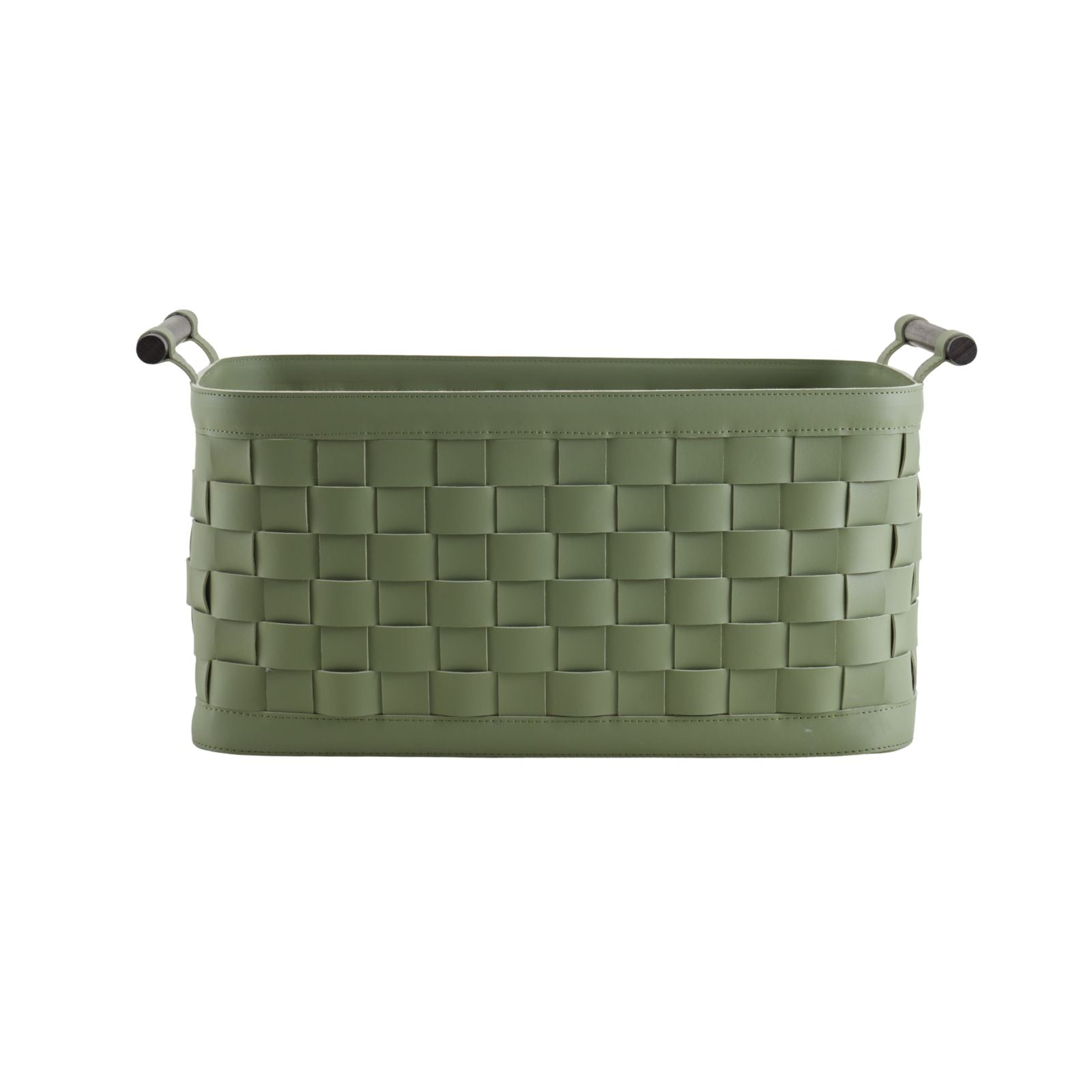 The Sage Green Woven Leather Basket offers a sophisticated storage solution with its elegant woven faux leather design in a serene sage hue. Ideal for tidying up living spaces or adding a refined decorative touch, this basket combines style and functionality with durable, easy-to-maintain materials.