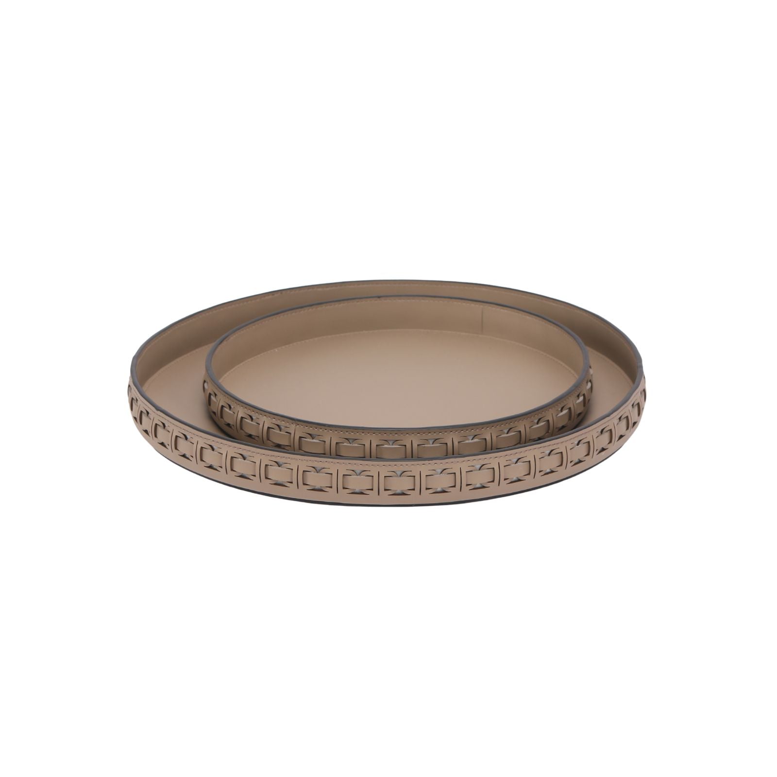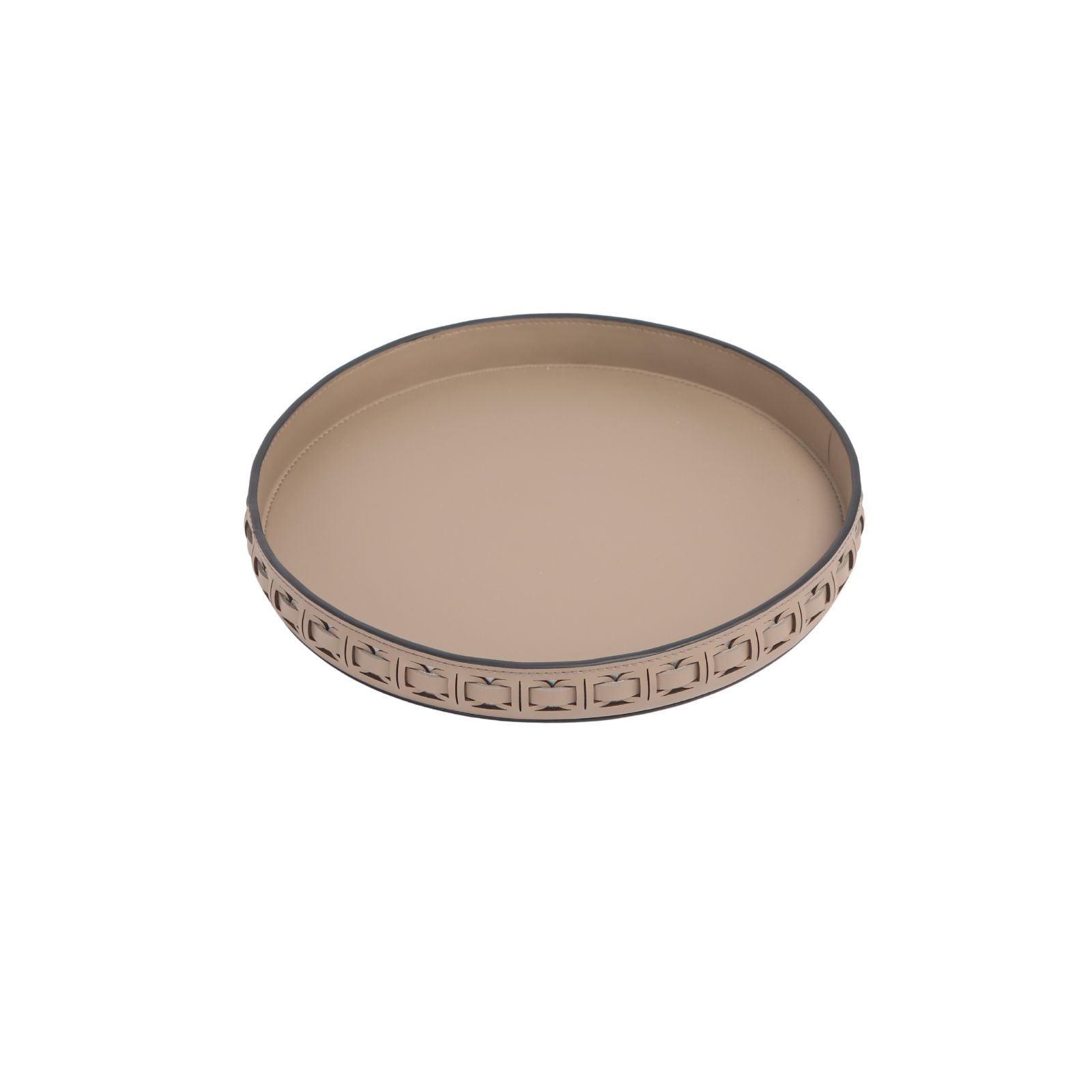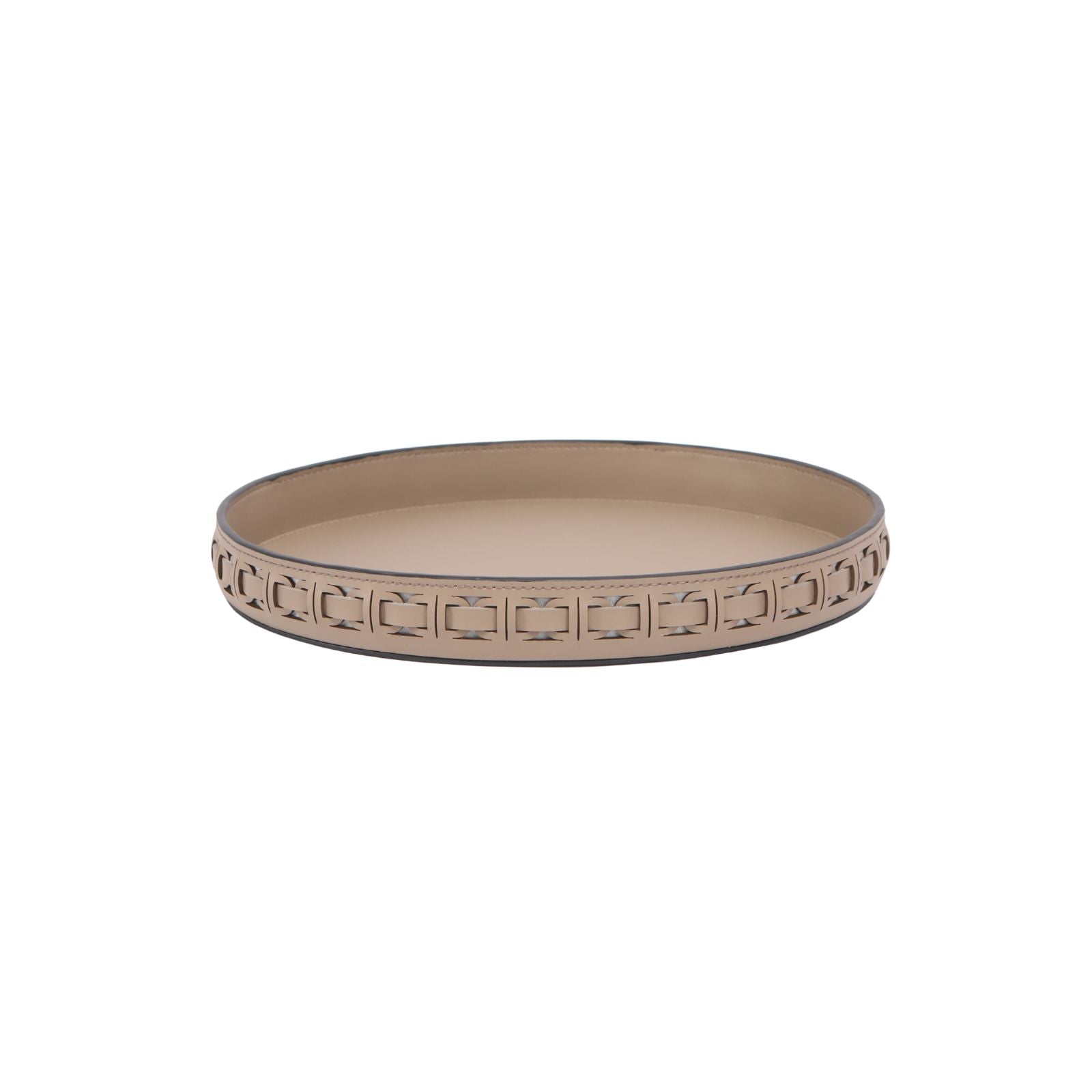 The Intreccio Ash Round Leather Tray showcases a sophisticated design with its distinctive plaited leather band wrapping the tray’s exterior. Crafted to blend elegance with practicality, this tray is ideal for stylishly organizing your essentials or enhancing your décor with a touch of refined texture.