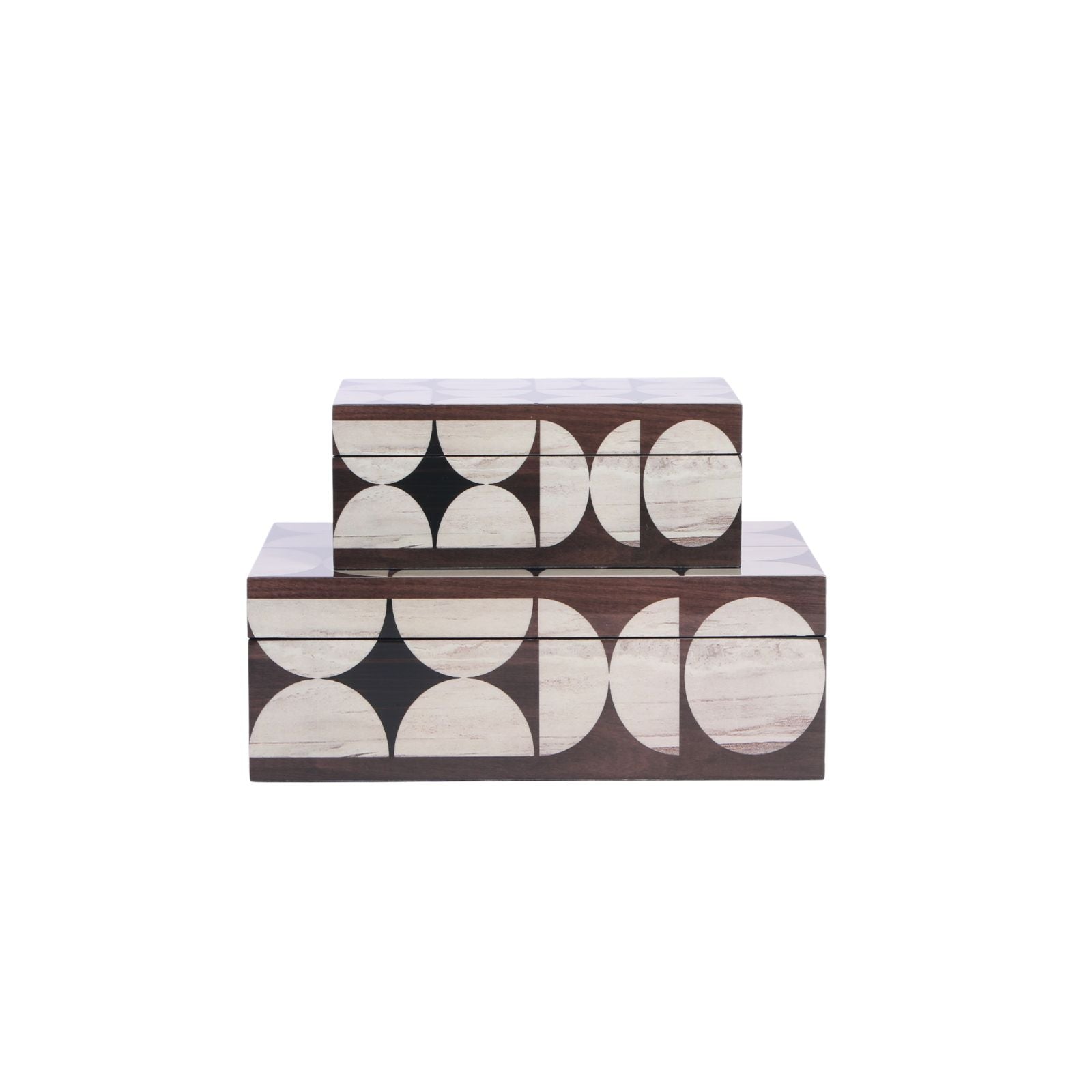 The Politura Glossy Geometric Timber Inlay Box combines elegant design with practical function. Its glossy geometric timber inlay surface adds a refined touch, while the hinged lid ensures secure closure. Inside, the ivory felt lining provides a soft, protective space for your treasured items, making this box a sophisticated and stylish storage solution.