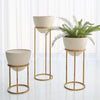 The Wise Egg Planters are a chic way to bring some life into your home. The stands are iron with a gold leaf finish, the eggs are iron with an ivory painted finish and include a removable plastic liner, making them watertight. Available in three stand heights.