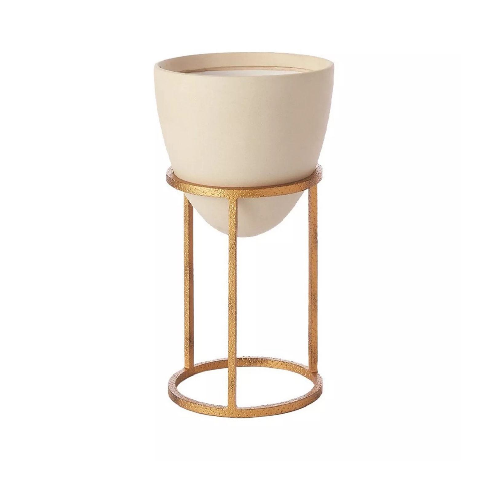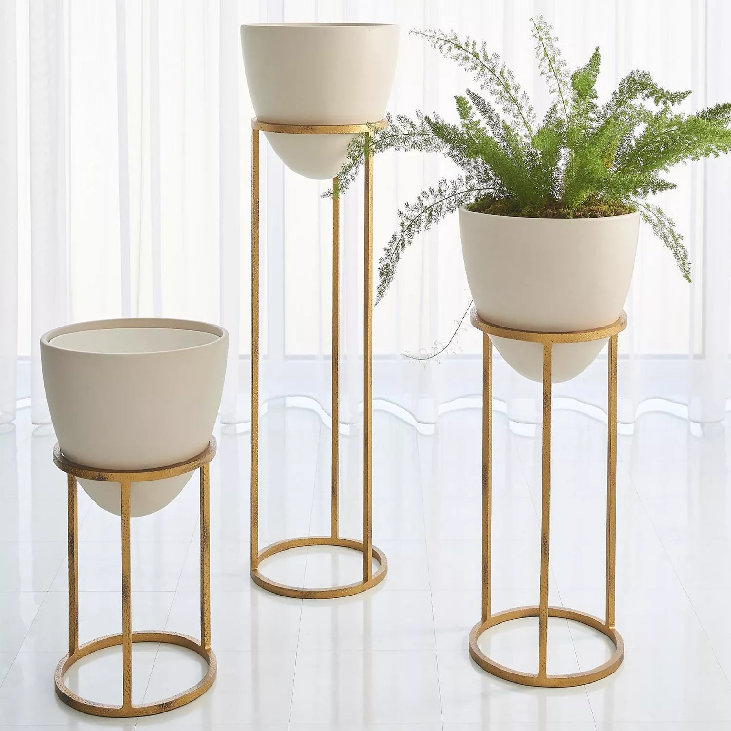 The Wise Egg Planters are a chic way to bring some life into your home. The stands are iron with a gold leaf finish, the eggs are iron with an ivory painted finish and include a removable plastic liner, making them watertight. Available in three stand heights.