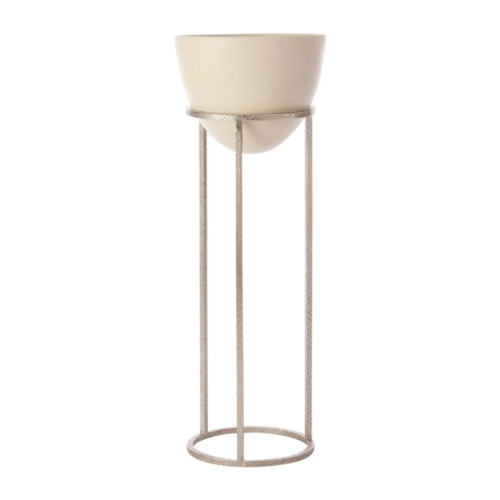 The Wise Egg Planters are a chic way to bring some life into your home. The stands are iron with a nickel finish, the eggs are iron with an ivory painted finish and include a removable plastic liner, making them watertight. Available in three stand heights.