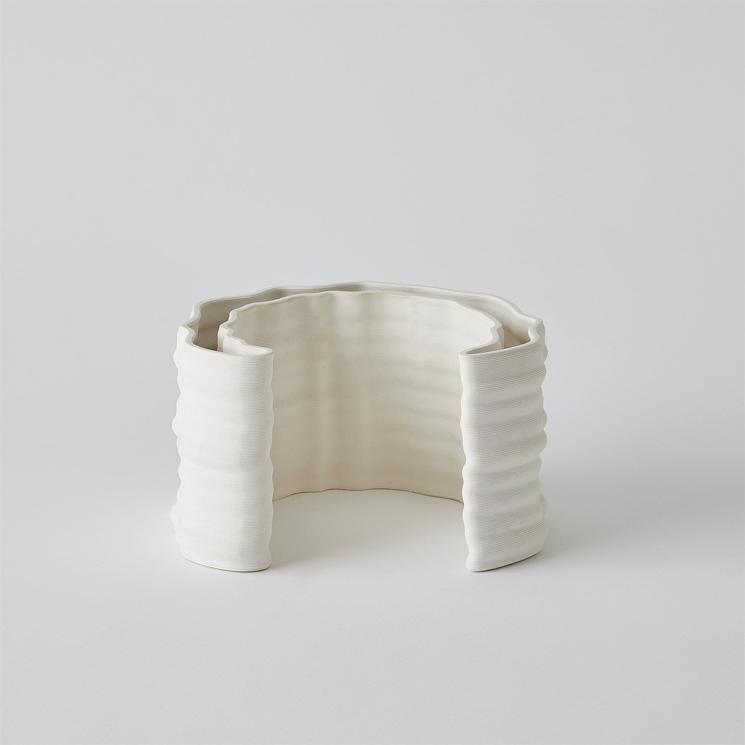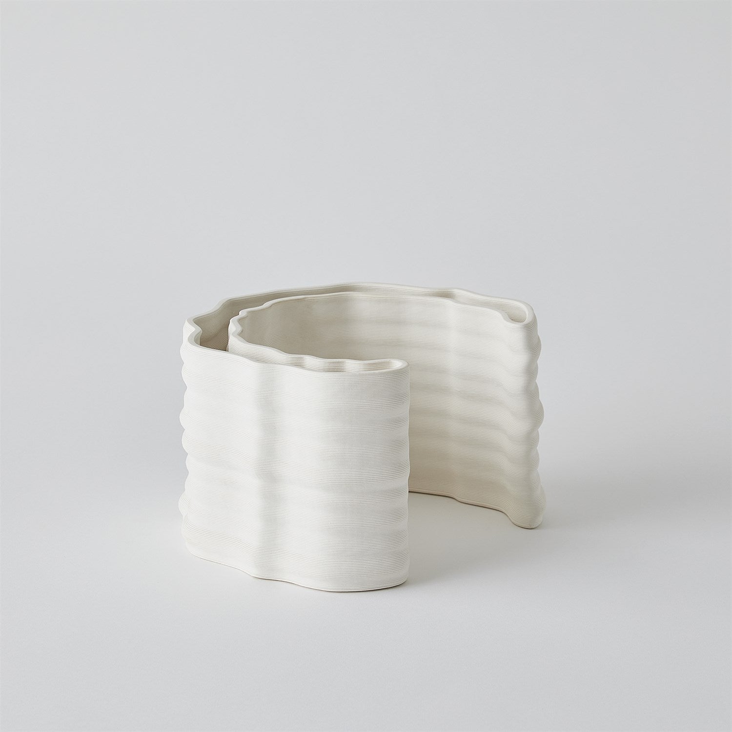 The Crescent Printed Vases feature a sleek matte white ceramic finish that embodies modern design. Crafted with advanced 3D printing technology, these vases offer a unique artistic touch, perfect for enhancing any space.