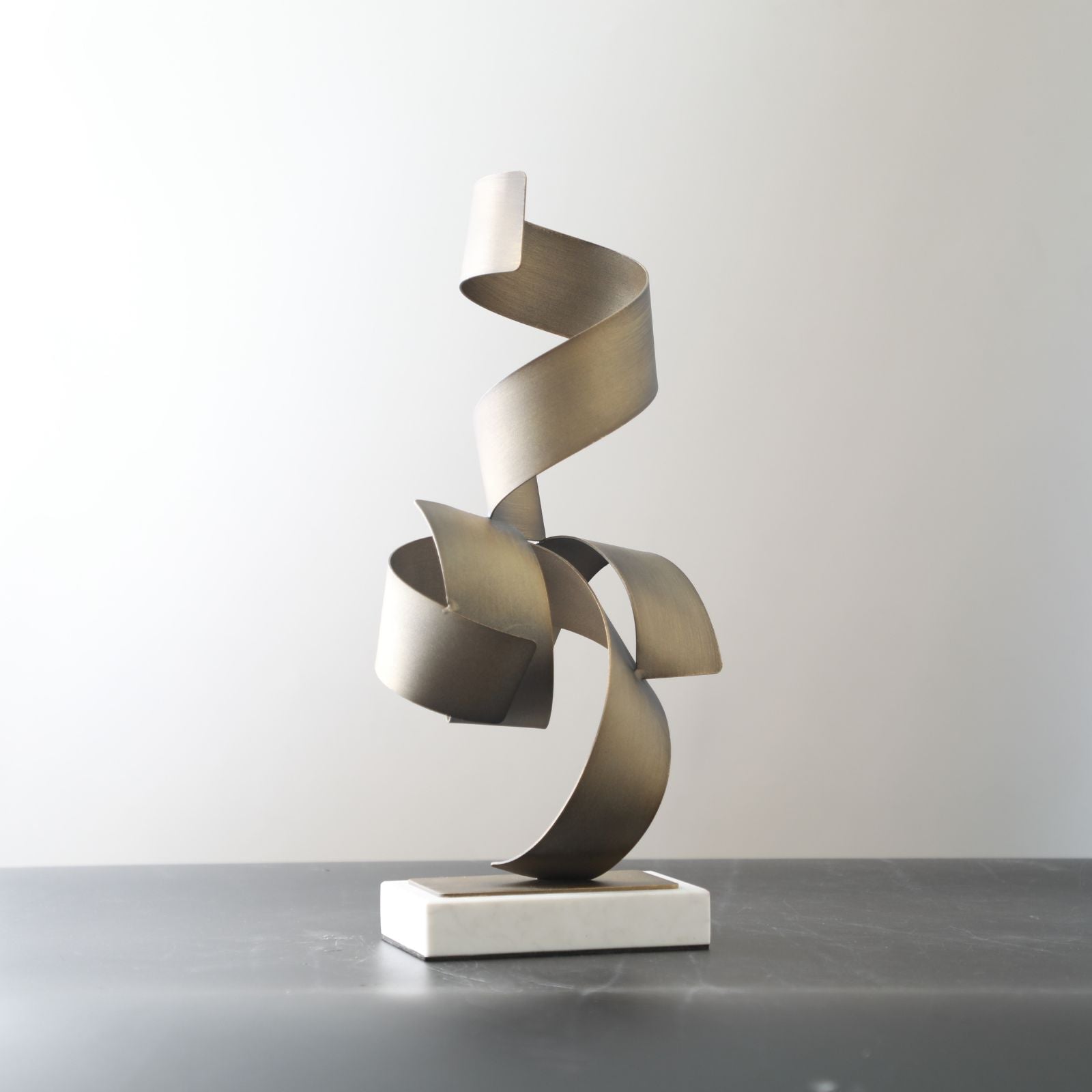 Elevate your space with the Golden Grace Abstract Iron & Marble Sculpture, a refined blend of iron and elegant marble. This artful piece adds a touch of sophistication and modern charm to any table or shelf, making it a striking focal point that complements contemporary interiors with timeless style.